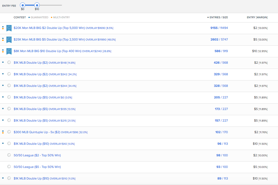 I also throw in an entry to the Grand Slam. I didn’t do this when I first started, but as I started cashing more consistently, I realized that my lineups always had some potential to hit a big score. For players who have not mastered lineup construction, I do not recommend doing this. Yes, you can do a cheap entry in the Squeeze, but $25 in the Grand Slam definitely adds up in the long run, and you are going to lose more often than you’re going to win. I have won the Grand Slam in the past, and I’ve finished in the top 15 a few other occasions. I have a very unorthodox cash game style in the sense that I stick with my gut, and do not roster chalky players for the sake of doing so. If they are chalk plays that I don’t like for one reason or another, and I’m able to find a better alternative, I’m simply not going to play them. I’ve also reached a point in my game where I simply trust my instincts.