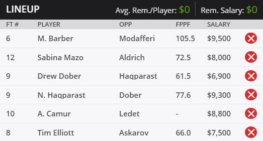| Askar Askarov | 8700 | Tim Elliott | Somewhat-Risky | -145 | +168 | Mazo had a disastrous UFC debut but whitewashed Shana Dobson in her follow up effort. I see that continuing now that she's settled in to the UFC ranks. A volume win or KO is sneaky good at $8K. |