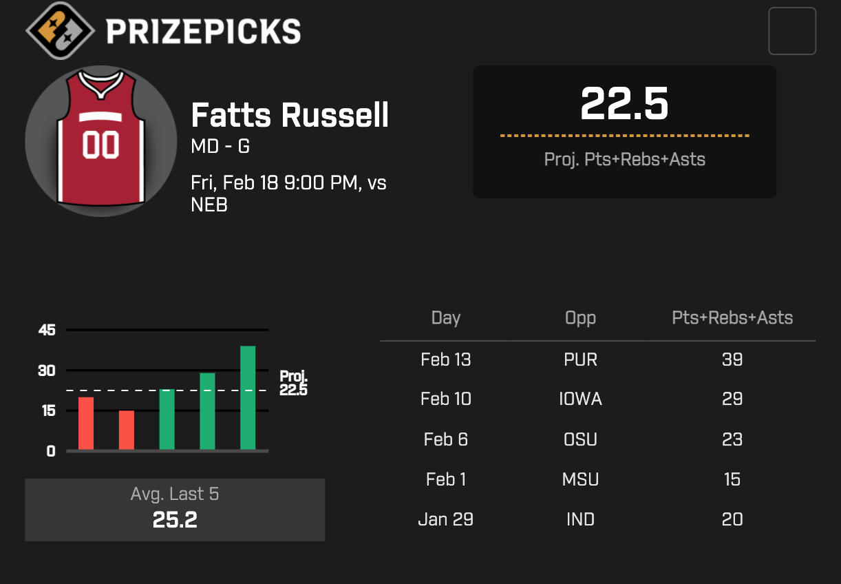 Nebraska is a dream matchup for targeting opposing players - whether it be in DFS, PrizePicks props, or anything else. The Cornhuskers play at a super-quick pace, are terrible at defense and rebounding, and allow a ton of points every single game. You can take the over’s on a bunch of Maryland players and feel pretty good about it, but let’s go the Fatts Russell route. The former Rhode Island transfer has, admittedly, had an up-and-down season - but he’s been playing much more consistently lately.
