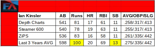 Veterans no longer seem sexy in drafts or auctions, but players like Kinsler who’s value seems masked by a perceived drop in production make for terrific pivots at present price points. This makes Kinsler someone to remember after round 12, especially if in need of runs or double digit steals. Bounce back players prove to be just as important as the breakouts when winning a league, especially if Kinsler hits 20 home runs with 15 stolen bases, it’s within the realm of outcomes.