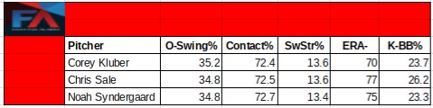 However, based on underlying statistics, Syndergaard could be a bargain due to his similarities to half of the “Big Four” starting pitchers in drafts. Using some batted ball data metrics along with discipline results from the last three years. Here’s how Thor stacks up with both Corey Kluber and Chris Sale:
