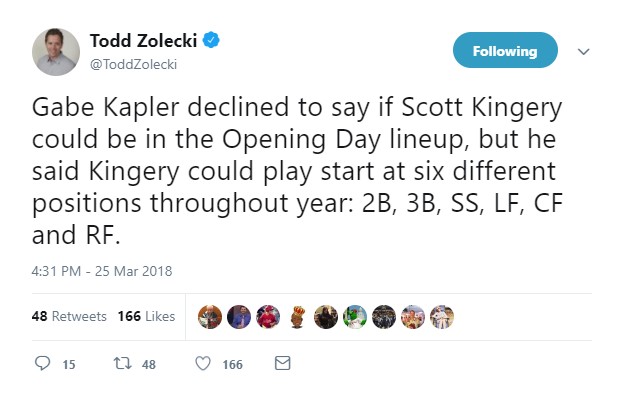 Kingery’s still learning the outfield on the fly, but appeared all over the infield in spring training. It’s very difficult to prognosticate how much Kingery will play nor predict what position(s) he will take at-bats away from. Production will dictate this accordingly, not only by him, but the players he’s competing for time with.