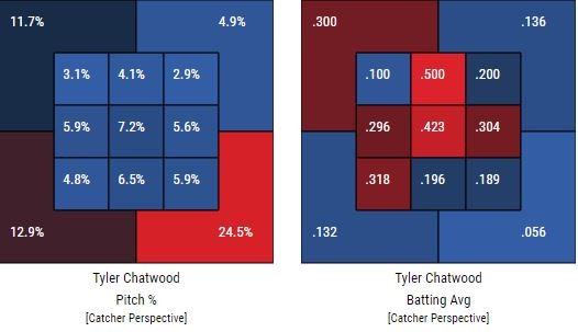 It shouldn’t come at a surprise that Chatwood is among the game’s elite in terms of generating groundballs. As you can see in the image above (via Baseball Savant), Chatwood absolutely peppers the bottom of the strike zone and very rarely leaves pitching up in the zone.