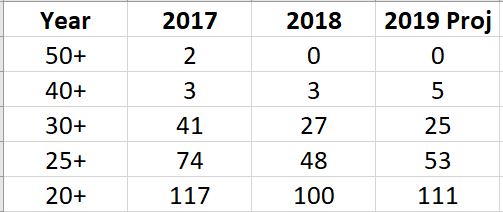 Seeing the trend of stats vs projections shows exactly what we pointed out.  Thirty players projected to have more than 30 home runs. That is the same number that did it in 2018. So be careful that you ALWAYS look for UPSIDE in your picks and then let the projections define your targeting.  That way you will always have way more stats than your projections sheet.