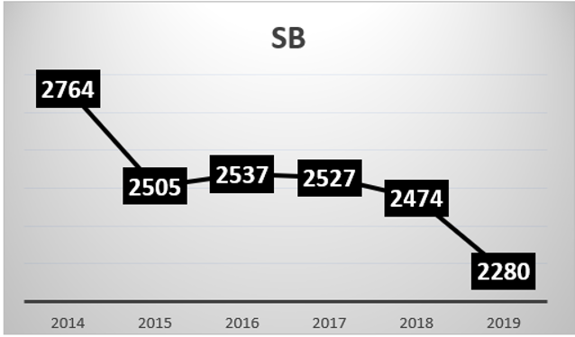 Even if the number of home runs goes back to 2018 numbers, 5600 home runs is still a ton more than stolen bases. Let’s have a look there, figure out how many of these were on active rosters to decide which is more important and by how much.