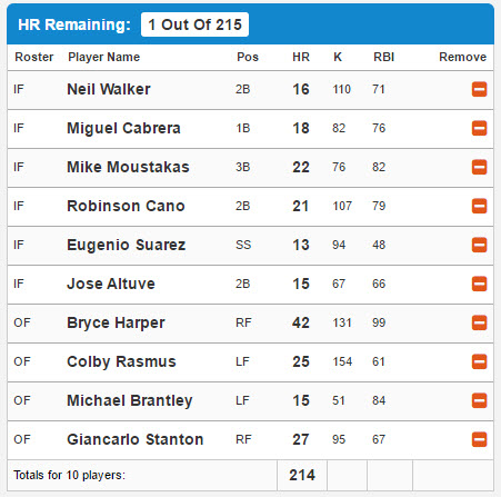 With a dollar to spare. If you look at this, it is a mix of fast start, good schedule and great projection. The nice thing about a one month contest is you can grab a player like Michael Brantley who was hurt but is now healthy and a slow starting Giancarlo Stanton.