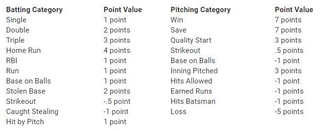 I’ll focus on the points leagues here. The scoring system is below.