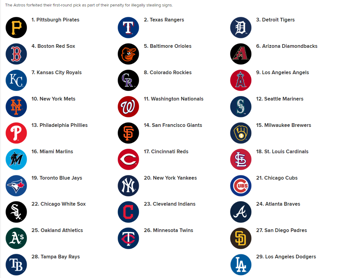 You can see the draft order below courtesy of MLB.com and keep in mind the Astros are still missing their first and second-round picks due to the 2017 sign-stealing penalties.