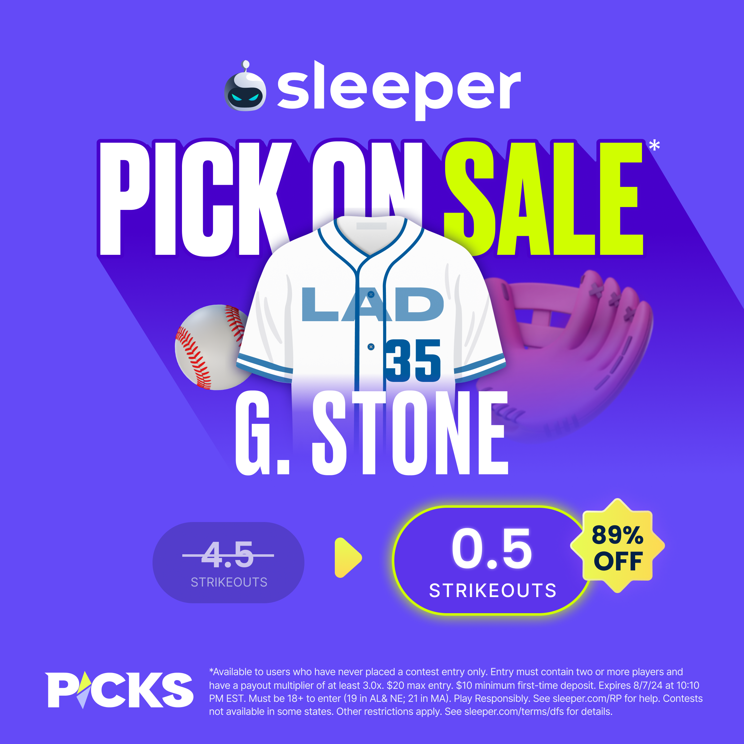 New users can also grab a free Gavin Stone square today! His strikeout projection is only 0.5 for tonight, which is a fantastic chance! Click the link to register and take advantage of the deposit bonus of up to $100 with Sleeper Fantasy promo code VAULT3!