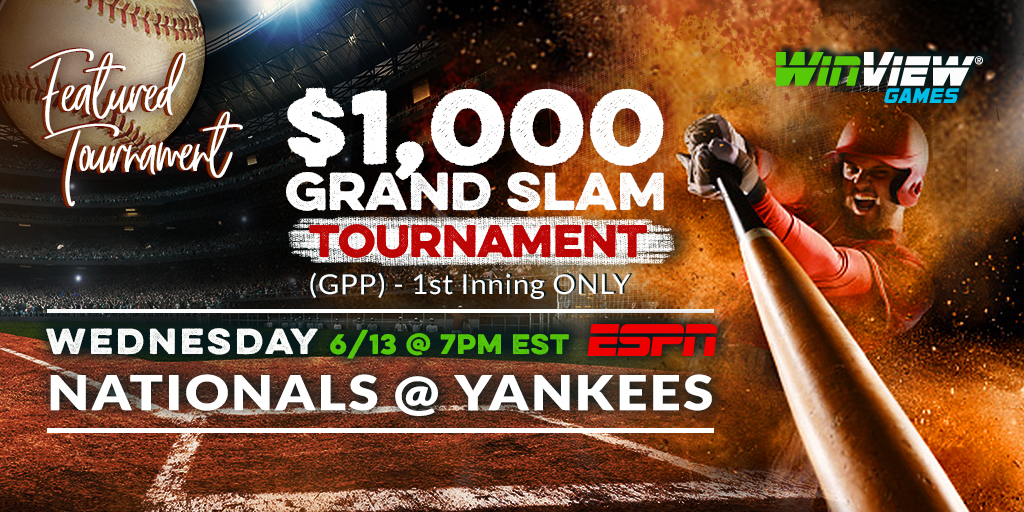 Have you checked out WinView Games yet? If you have, that’s great but if you haven’t then today is the day to download the app and try it out. WinView Games is running a $1,000 GPP contests for the 1st inning of tonight’s nationally televised game between the Washington Nationals and New York Yankees. This contest costs just $10 to play and awards $200 to first place. Do you want to play these contests for free? Well you can by downloading the app through www.fantasyalarm.com/wvgames and when you deposit $20 you will get $20 free in your account.