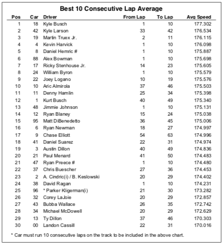 Best 10-Lap Averages For Final Practice