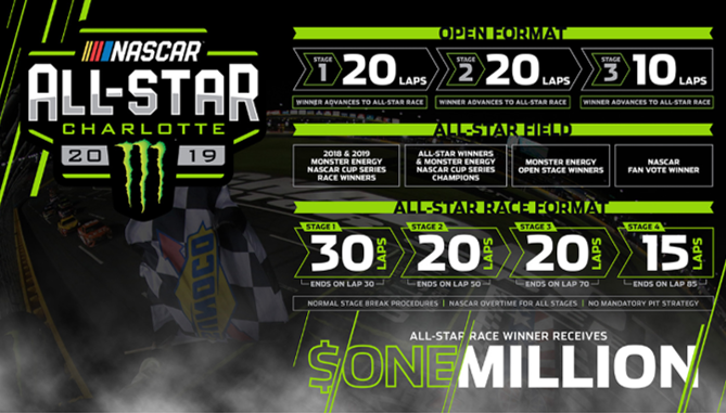 We’re nearly halfway through the regular season at the Cup level and thus the All-Star Race is upon this Saturday night in Charlotte. The All-Star race is a different kind of race, firstly in that, it’s an exhibition race, but secondly in its length and format. Now it being an exhibition race means that there are no points or stage wins or overall race wins on the line here for the Cup standings, but there is a million-dollar payday at the end of it for the winner. Also, because it’s an exhibition race, the field is about half the size of a normal Cup race including the race next weekend, the Coca-Cola 600.