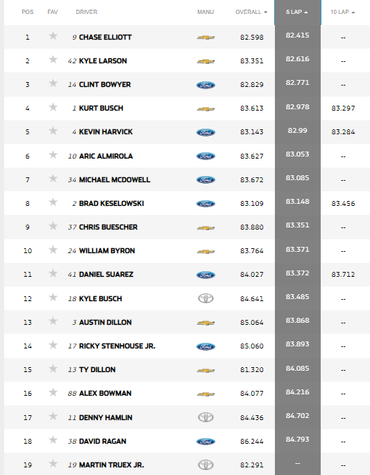 • William Byron wasn’t it to be a bit tighter in the right hand turns and more drive off heading down the backstretch and also noticed that his car is getting looser in the sunny spots of the track.