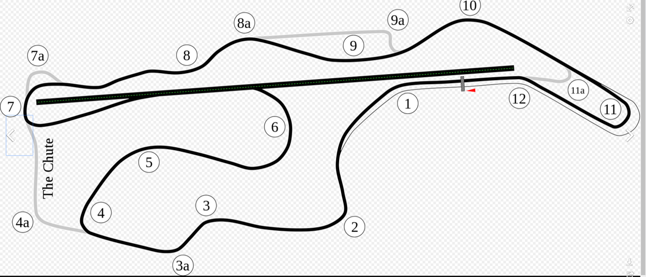 As you can see in the picture above, the current layout is the one that is outlined in black and the straight stretch with the green dotted line down the middle of it is a dragstrip that is now part of the track as they race into Turn 7. The previous layout stayed straight at Turn 4 and turned at 4a going across The Chute and turned at 7a into the s-turns and then followed the rest of the black outlined course. What the picture doesn’t show is the elevation change over a single-lap on this course which is 160 feet which adds a whole other challenge for the drivers to factor in. The increase in turns and the race down the drag strip portion should actually increase passing opportunities as you can get inside of someone on a turn and pass them. Speaking of passing chances, looking below, you’ll see the winners starting spots.