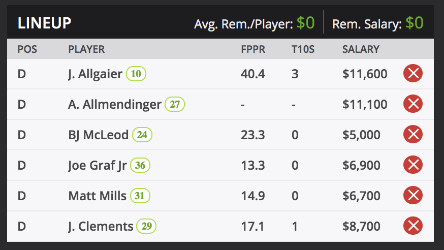 I would consider Allgaier, Allmendinger, and Clements locks. McLeod is almost a lock as well given the need to pay down after locking in two guys priced $11,000+. Graf and Mills would be the pivots going down/up to maybe Timmy Hill, Myatt Snider, Tommy Joe Martins, etc.