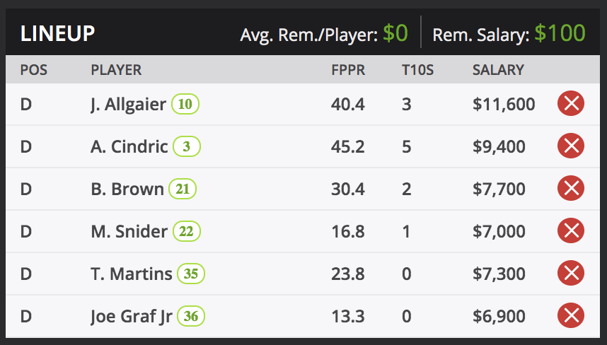 I love this anti-Allgaier build. You still get PD with plenty of guys and three guys starting in the Top 10 that are candidates for laps led. I'd keep Cindric, Hemric, Jones, and Clements as locks and work off Martins and Hill if looking to pivot and change up the build.