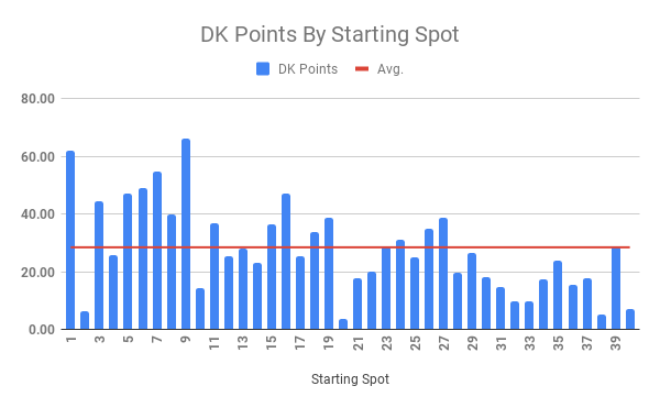 These charts show the average points scored by starting spot over the last five races at Atlanta regardless of who started in those spots.