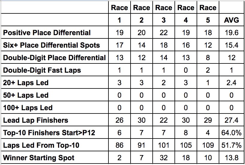 Position differential and the final result matter more. The fastest laps will be spread out among the field and laps led are going to be difficult to gauge. So all we have to rely on is the starting lineup, which we got Saturday because we no longer have practice sessions for superspeedways.