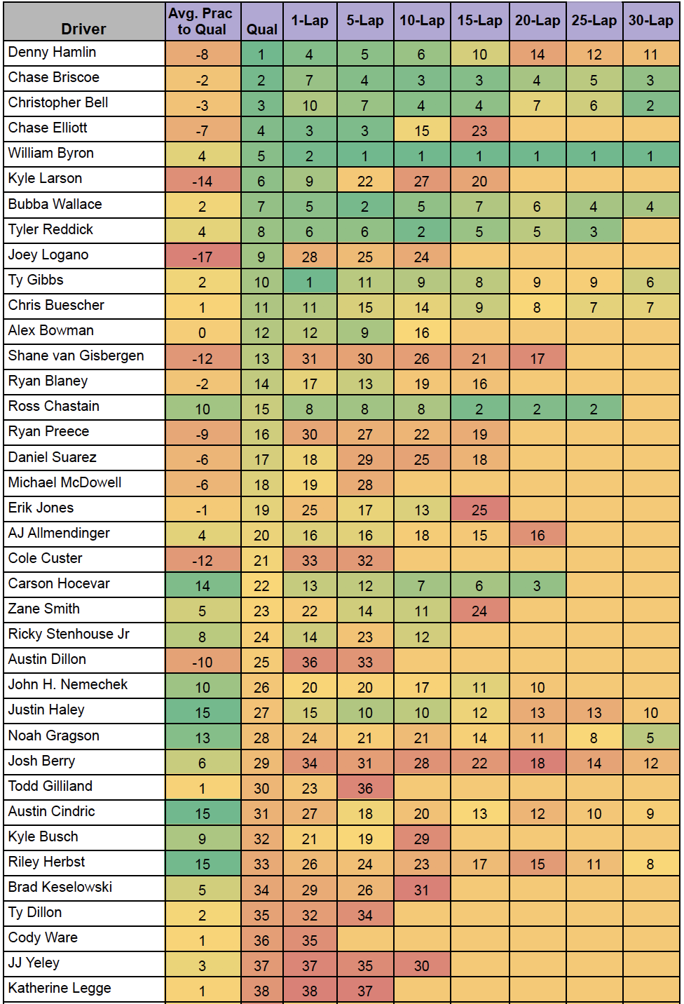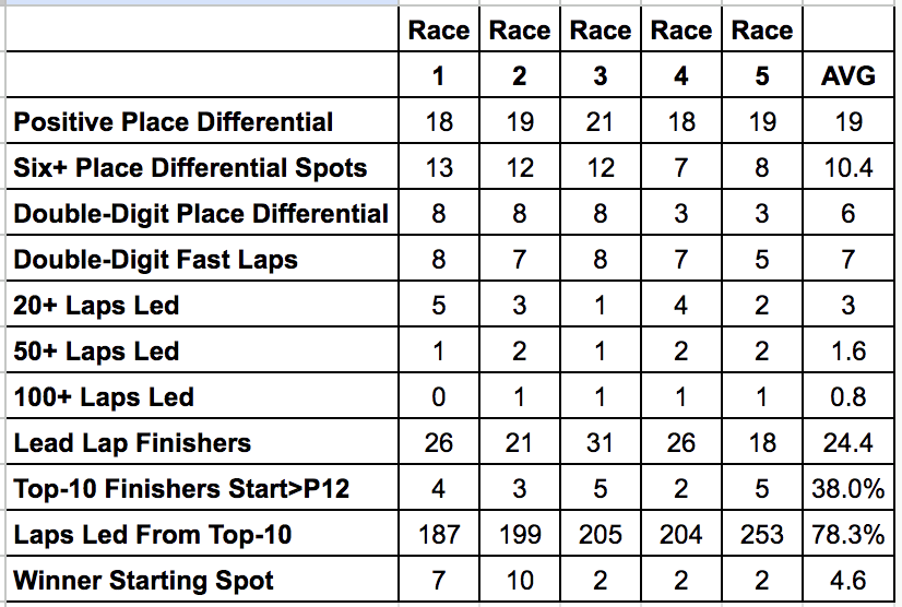 We can also look at other intermediate tracks as well that feature tire wear and banking. So Charlotte, Darlington, Homestead, and even Michigan come to mind when looking at data for comparable tracks that use the same aero package.