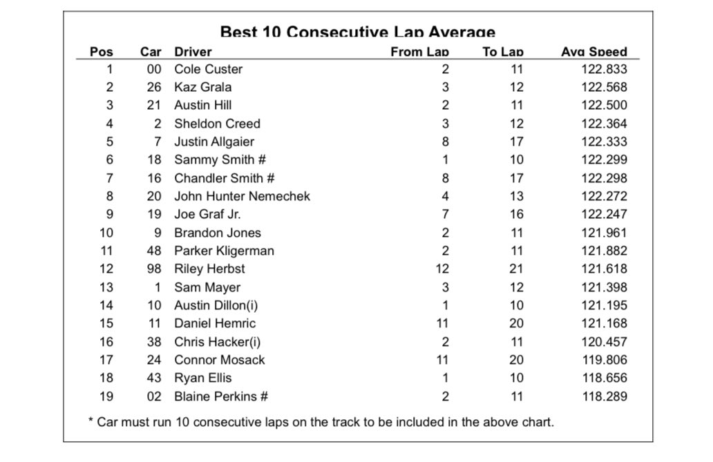 Prior to practice and qualifying, I didn’t have too much interest in Custer heading into this weekend. He’s had okay results in the Xfinity Series at New Hampshire, but really he was one of those drivers that just fell victim to Christopher Bell’s domination here in previous races. But his car was fast in practice on Friday. He posted the second-fastest single lap and had the best ten-lap average as well. He comes into New Hampshire with 11 straight top ten finishes with eight finishes in the top five.