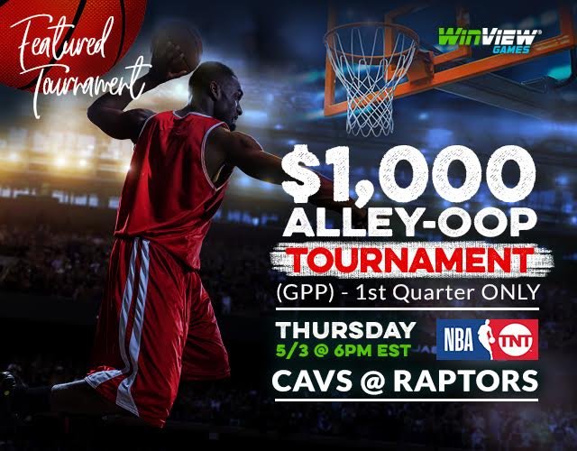 WinView Games is running a $1,000 GPP Contest tonight for the 1st quarter of the Cavalier vs Raptors game. Buy-in is just $10 and first place wins $200. Right now we are running a Deposit $20 get $20 promotion when you download the app through www.fantasyalarm.com/wvgames so join the Fantasy Alarm Team and the rest of FANation and win some cash tonight!