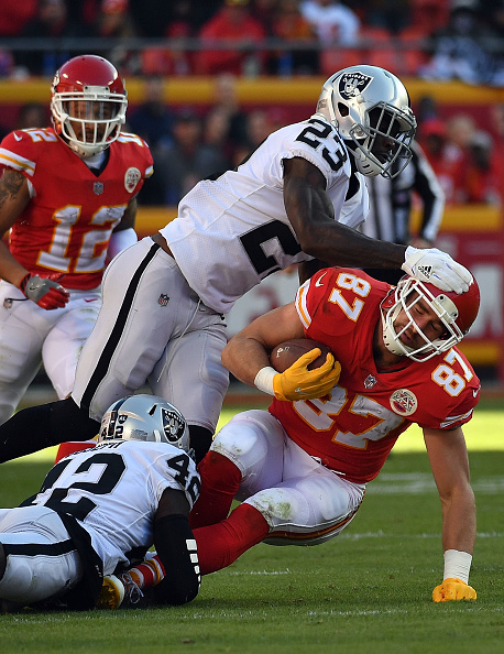 Travis Kelce joined Bernard, Hopkins, and Allen as the only players over 50% owned, checking in at 61.6%.