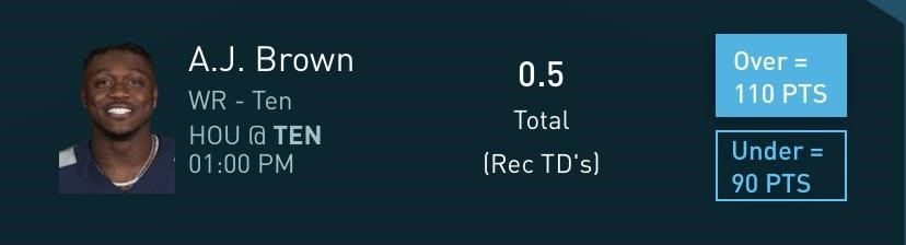 This is a free touchdown and 110 points. Despite not scoring in either of the team’s last two games, Brown draws a familiar foe and one that he has decimated over the years. Brown has averaged 1.3 receiving scores per game in four career contests against Houston, and the Texans’ secondary has been brutal of late. Take your 110 points and run.