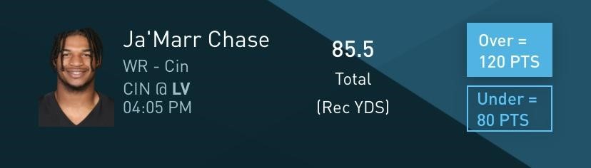 Since going for 201 yards against the Ravens, Chase has just 81 yards to his name in his last two games. However, there’s a lot to like for Chase against Las Vegas, so we are going to chase the 120 points here with the over. The Raiders rank 22nd in DVOA against the pass, and Chase has nine or more targets in five of his last six games. Chase’s upside is immense, and the rapport with Joe Burrow is well-documented.