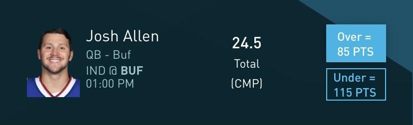 The score of the game does not matter, as Buffalo will just continue to throw, and throw, and throw, and throw. Allen has attempted 40 or more passes in three of his last four games, and he’s completed more than 24.5 passes in three of his last four games. Indy has allowed 67 percent of the opposition’s passes to be completed over the last four weeks, while Allen is at a 70.7 percent mark himself. Yes, it’s chalky, but 85 points is better than zero.