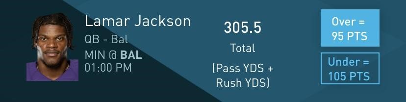 Lamar Jackson OVER 305.5 Passing + Rushing Yards