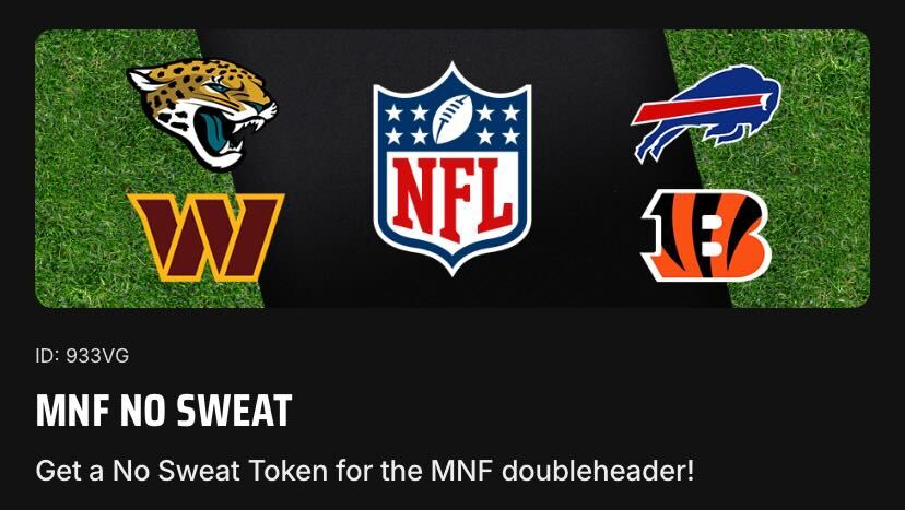 Check out the newest NFL betting odds at BetMGM Sportsbook. This week is a great chance to use the NFL no sweat token promotion. This special token gives you a bonus bet refund if your NFL MNF SGP bets lose.Â