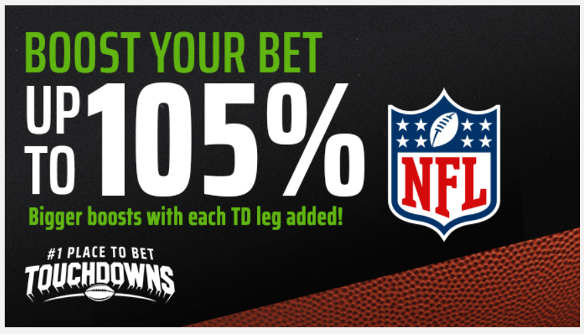 DraftKings Sportsbook also offers a 105% profit boost on parlays featuring touchdown scorers. Simply claim your parlay boost token, add it to any parlay, SGP, or SGPx, and enjoy the potential earnings.Â