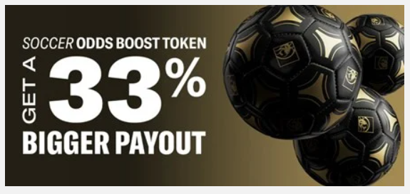 It’s even more straightforward, as it doesn’t have to be targeting a specific market. So, just make a selection in a soccer matchup for the ability to apply an odds boost token worth another 33%.