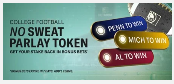 BetMGM Daily Bonus: CFB No Sweat Parlay Token