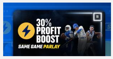 Take advantage of FanDuel Sportsbook's 30% Same Game Parlay Profit Boost and increase your winnings by 30% on any Same Game Parlay across all sports. Whether you're placing bets on NFL, MLB, or any other sport, this boost gives you the opportunity to enhance your payout.Â