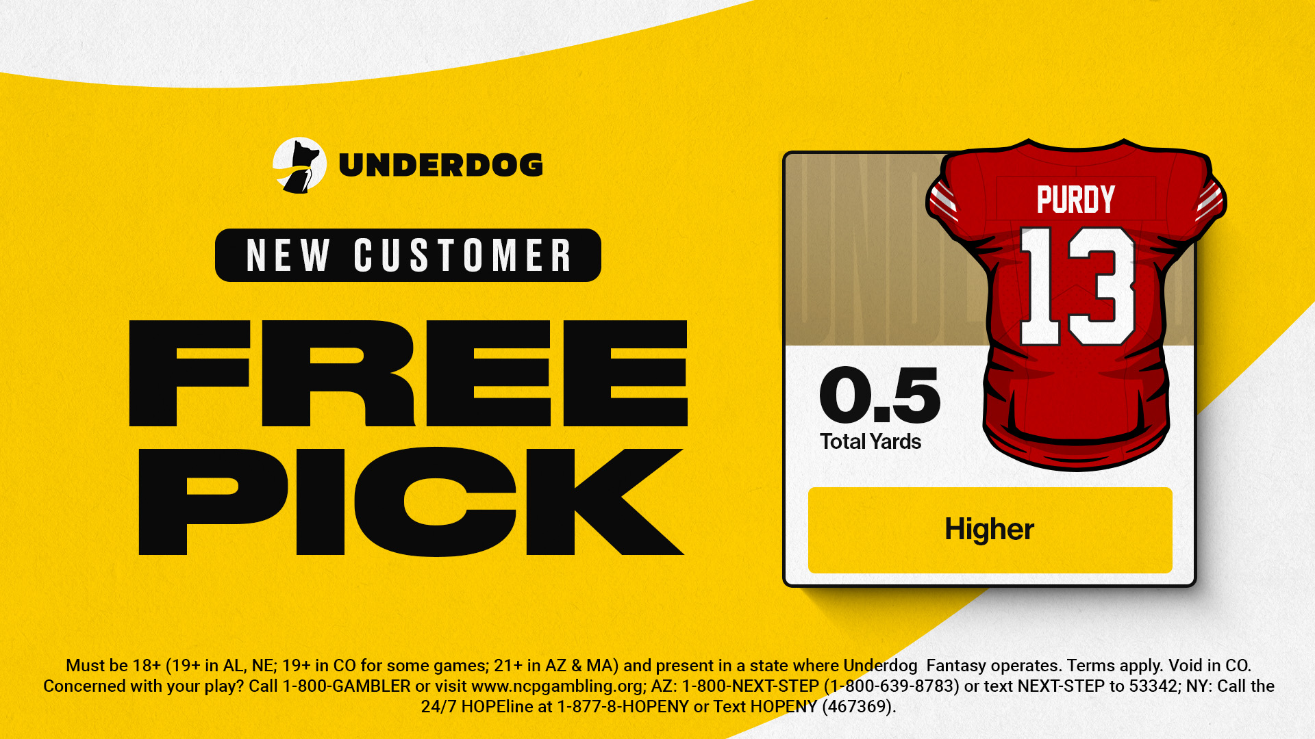 No matter which other projections you target with your Underdog Brock Purdy promotion, it’s all available to you, but you know that free pick already makes your entry that much better!