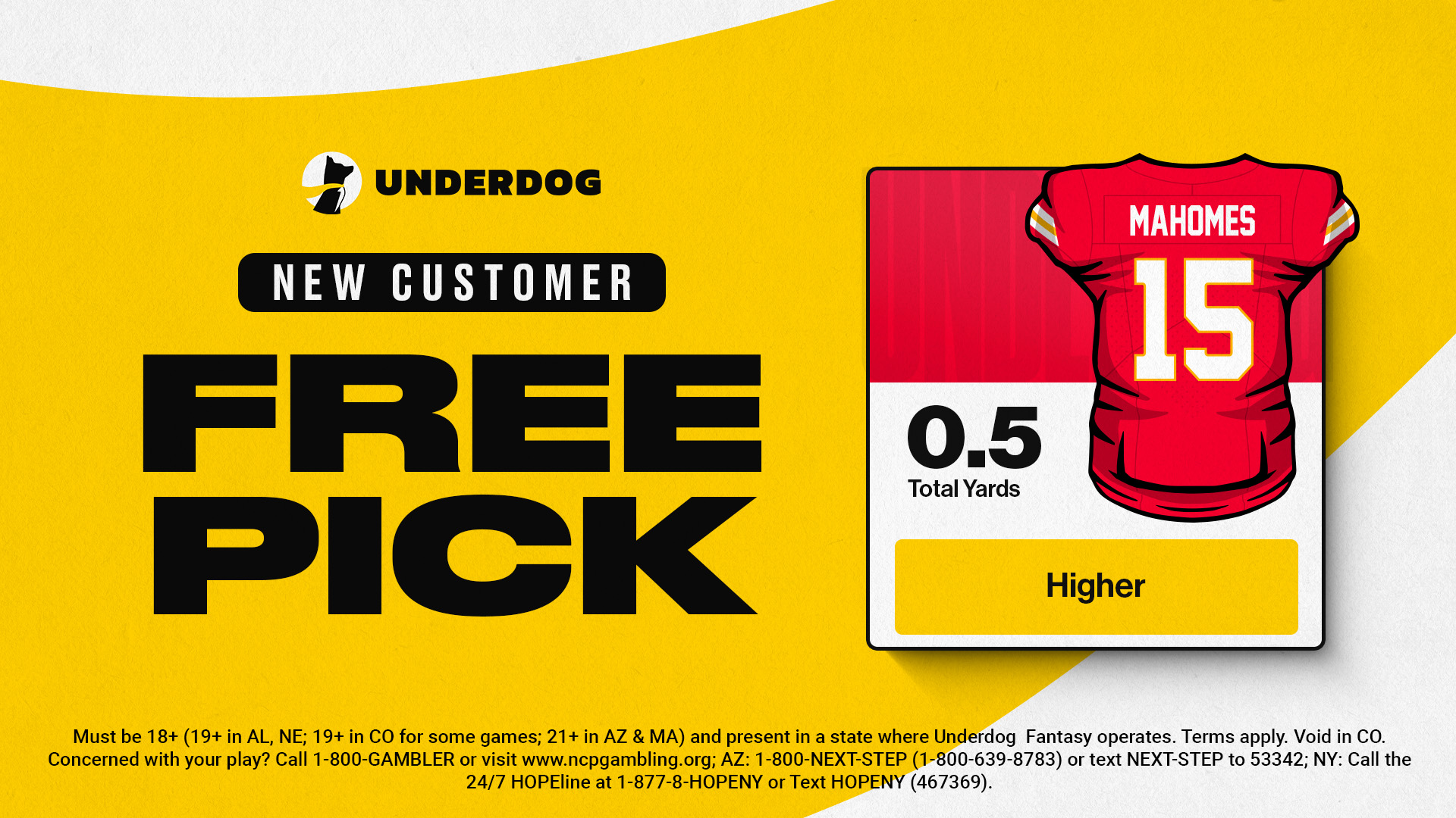 After that, you’ll be ready to rock with your Patrick Mahomes pick special, not to mention other discounts that Underdog offers on a virtually daily basis!