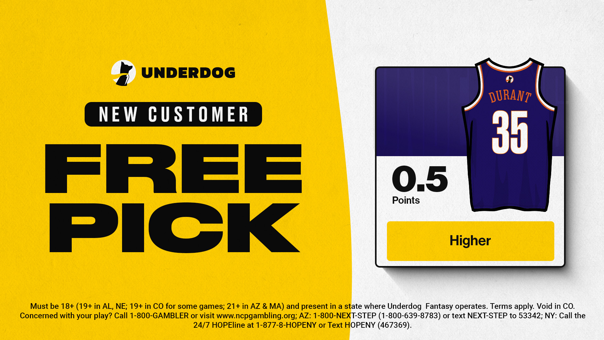 What more can we say? From getting started with a guaranteed Underdog promo code bonus worth up to $1,000 to enjoying a full board of player projections with a Kevin Durant free pick, there is no reason to delay any longer.
