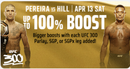 The best part is that this bonus is instantly credited to your account, allowing you to use it right away to back all of my UFC 300 best bets. On top of that, DraftKings even has a specific UFC 300 promo on offer! If you craft a parlay, Same Game Parlay, or SGPx, each added leg with add an additional profit boost, up to 100%!