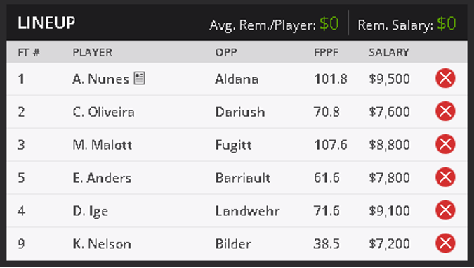 MMA DFS UFC 289 Example Lineup